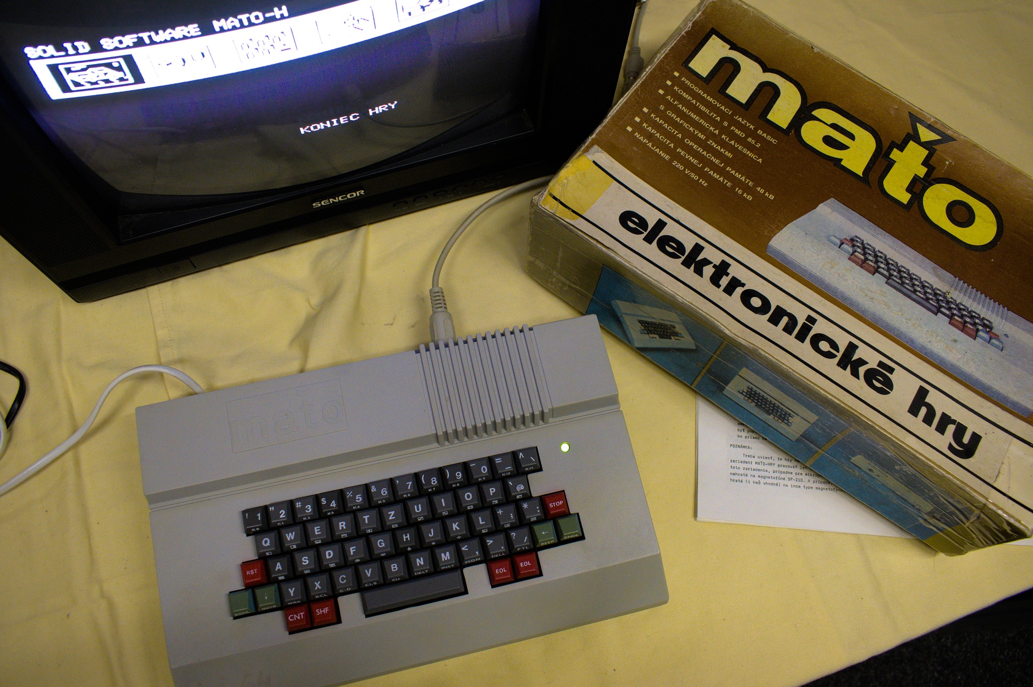 Nějakou dobu nazpět jsme sdíleli příspěvek o našem opraveném Maťovi. Opravili jsme však dva - jeden který má v sobě ROMku s Basicem a druhý s hrami. Počítač úspěšně zprovoznil Lukáš Nevařil a nyní je vedle svého brášky uložen v našem archivu. Vedle toho jsme udělali také dump ROMky, který jsme nahráli do našeho Inventáře.