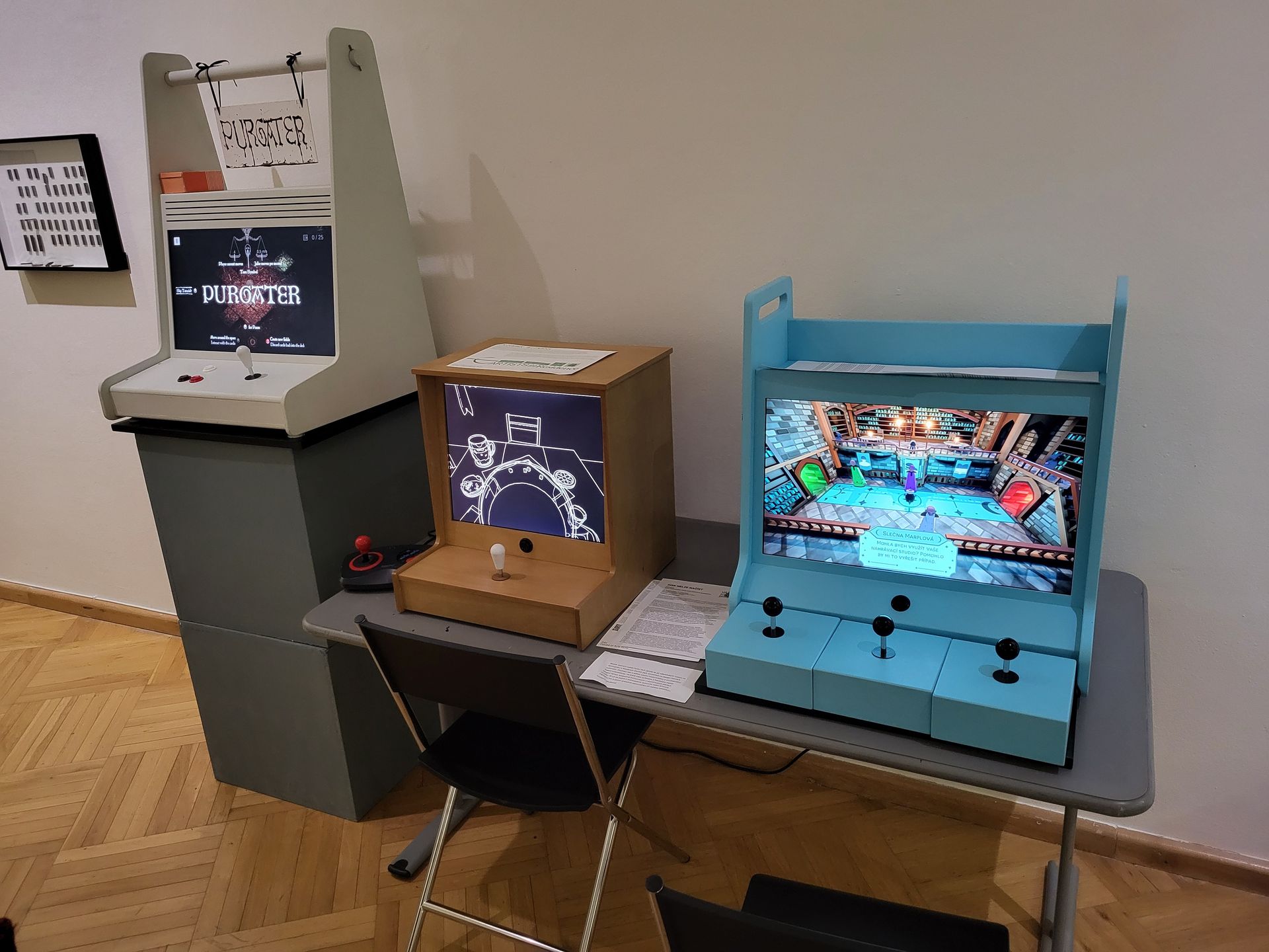 We have received the opportunity to participate in the exhibition Disc Cannot Be Read (in Czech: Disk nelze načíst) - an exhibition by the Vašulka Kitchen team focusing on the history of analog, (pre) digital technologies, media, and artistic experiments from around the early 1990s. We have contributed our computers with the games Myst and Samorost to the exhibition.