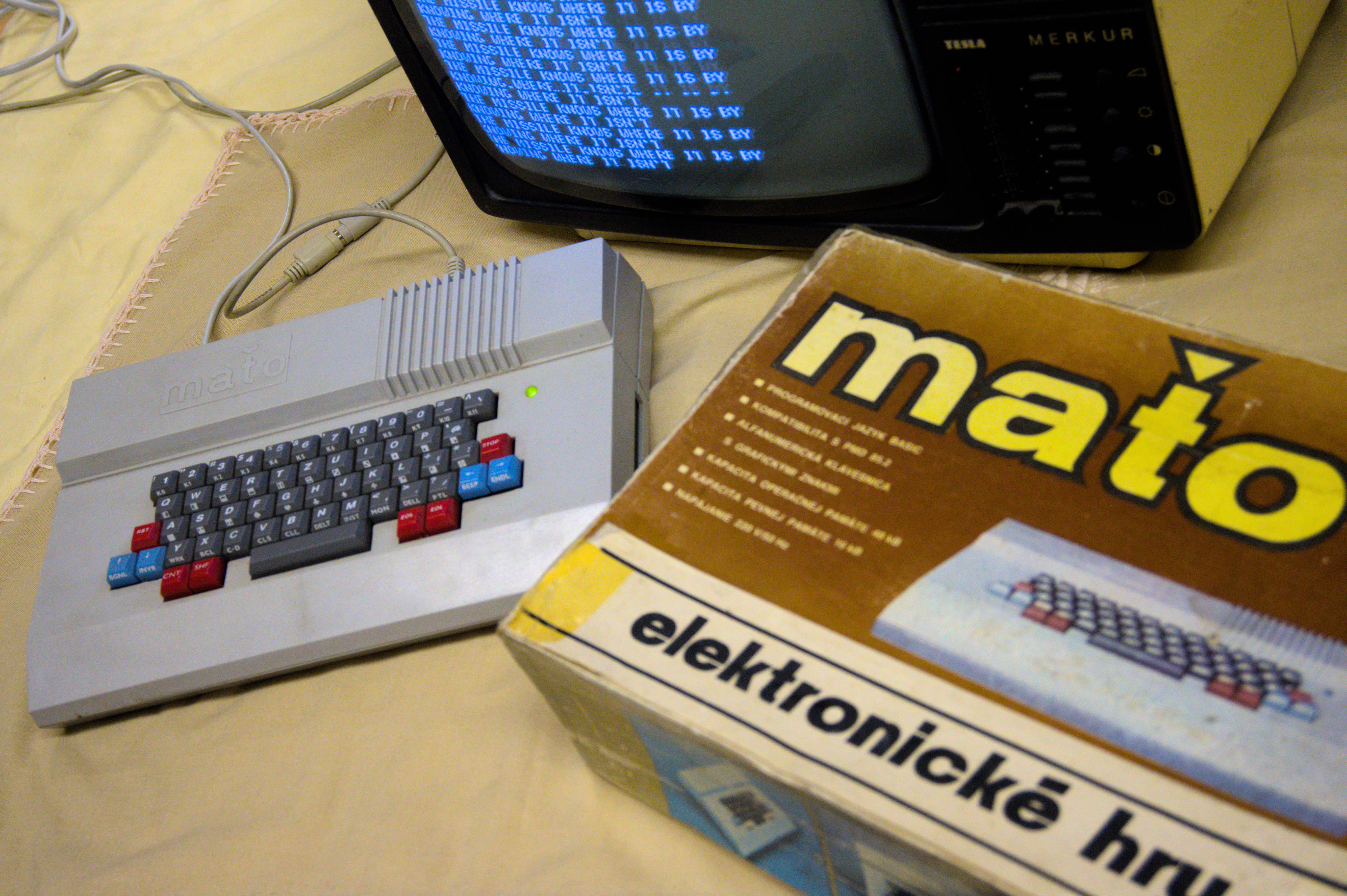 Již nějakou delší dobu nazpět se nám do rukou dostalo několik kazet s programy a počítač Maťo — stroj slovenské výroby z konce 80. let, který byl klonem PMD 85. Počítač úspěšně zprovoznil Lukáš Nevařil a nyní je uložen v našem archivu.